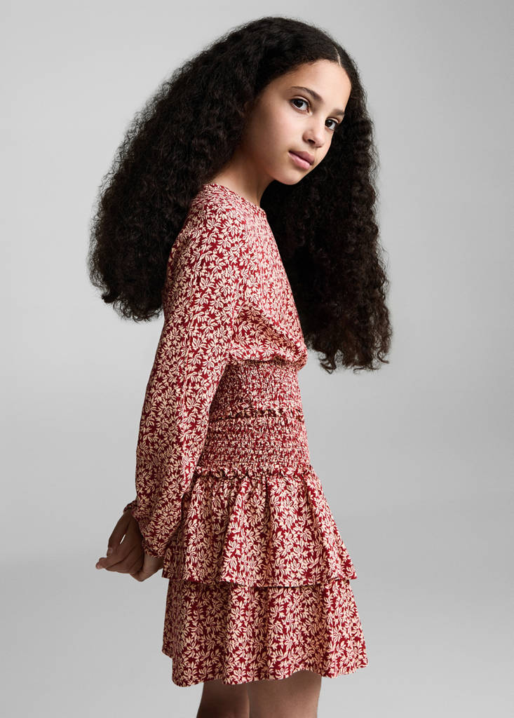Leaf print. Ruffled design. Ruched panel. Short design. No Fastening. Set available as total look. Printed design. Viscose fabric