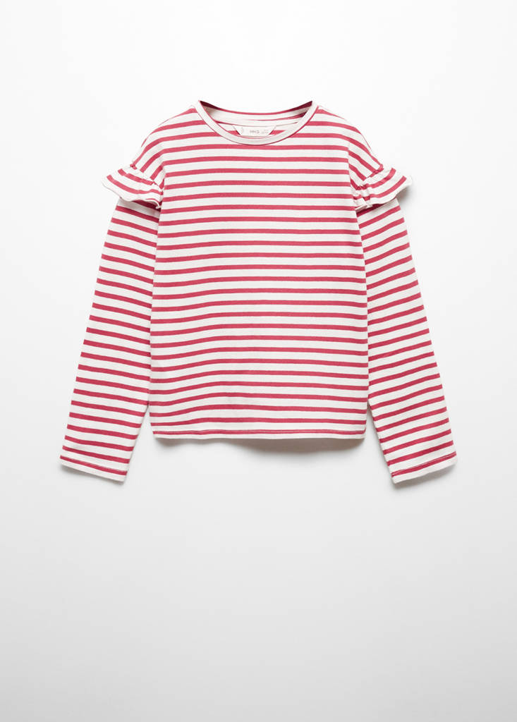 Striped ruffle sleeve t-shirtCurrent price [đ 349,000 ]đ 349,000Select a colourCherrySelect your size5-6 years (116cm)7-8 years (128cm)9-10 years (140cm)11-12 years (152cm)13-14 years (164cm)DimensionsAdd to WishlistSee lookFree delivery to storeStraight design. Striped print. Ruffles on the sleeves. Round neck. No FasteningDetails, composition and careStore availabilityItem qualitiesRecycled cottonAt least 20%This fibre is obtained from pre- and post-consumer textile waste that is transformed into new fabrics.