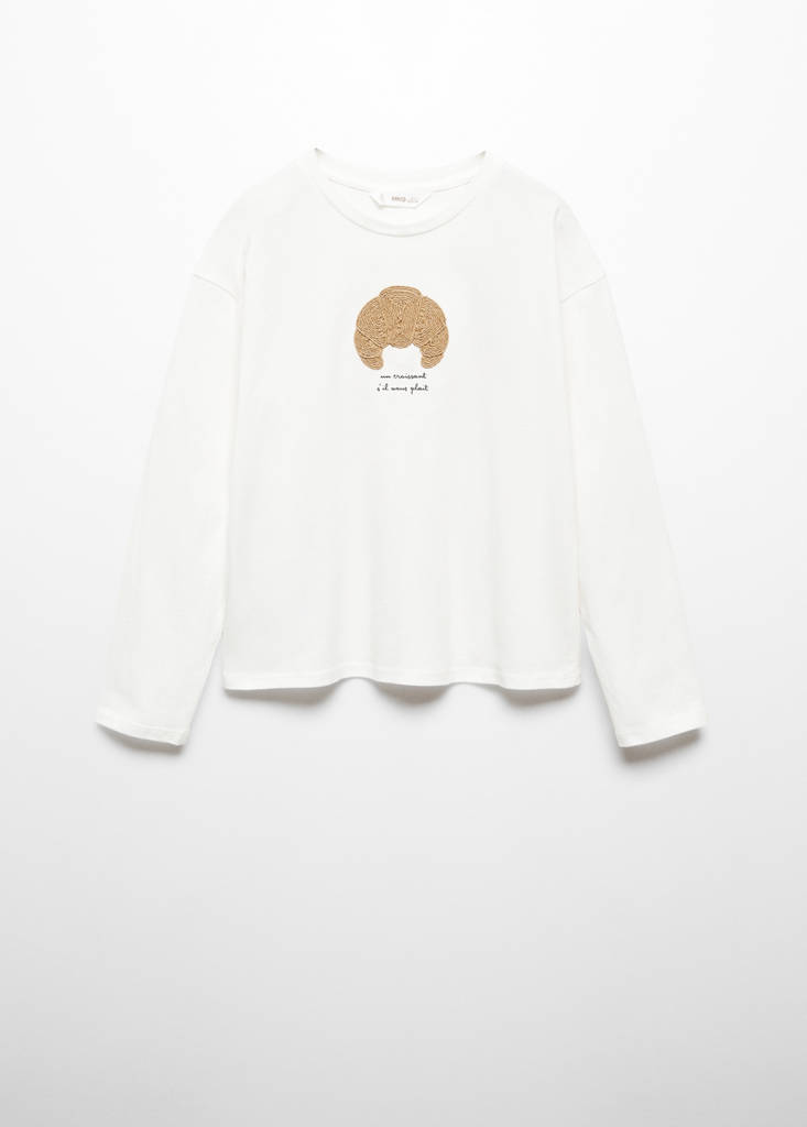 Straight design, embroidered draw, printed message, rounded neck, long sleeve.