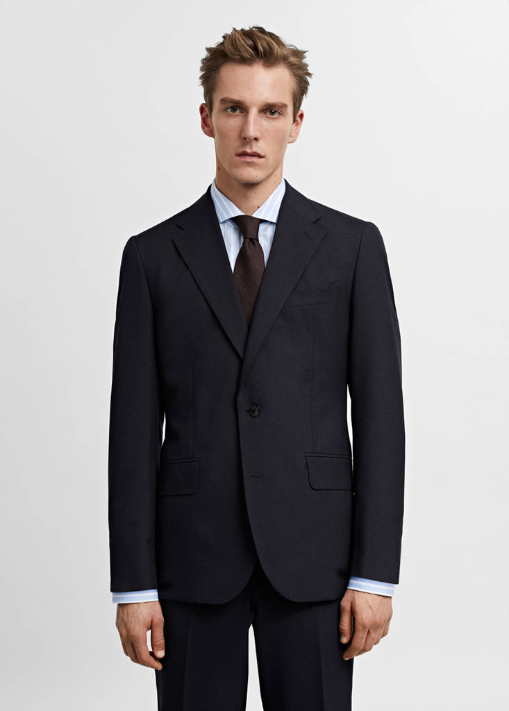 Slim fit. Lightweight fabric. 100% virgin wool fabric. Notched lapel collar. Chest welt pocket. Two pockets with flaps on the front. Long sleeves with buttoned cuffs. Straight hem. Interior pocket. Inner lining. Tailoring collection. Front closure with buttons
