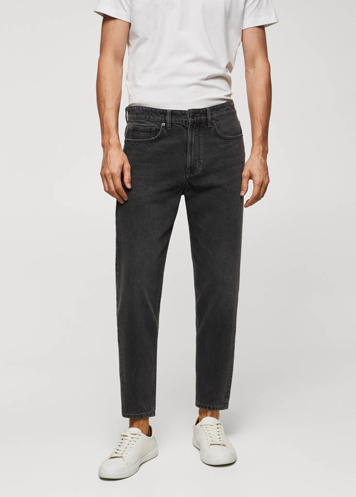 Tapered fit: wide cut at the top that narrows from the knee to the ankle. 100% Cotton. Denim-style cotton fabric. Crop style. Two front pockets. Coin pocket. Two patch pockets at the back. Straight hem. Denim jeans style