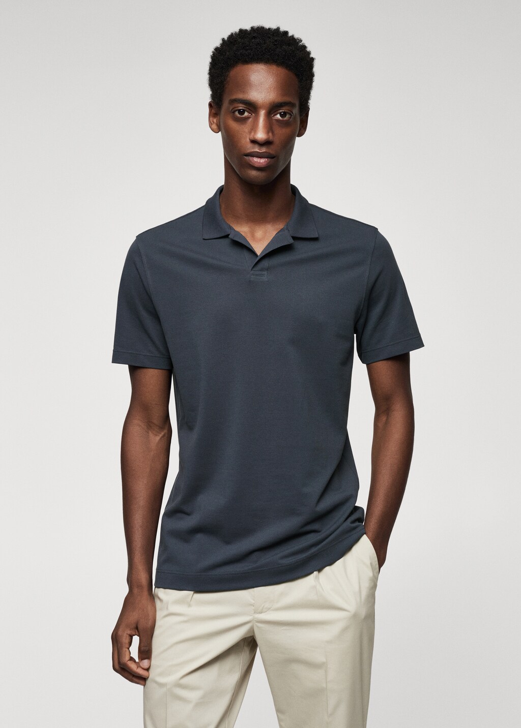 Cotton piqué polo shirtCurrent price [đ 1,099,000 ]đ 1,099,000Select a colourBlueSelect your sizeXSSMLXLXXLAdd to WishlistGet the lookFree delivery to storeSee availability in storeDescriptionLightweight pique fabric. Straight-fit. Polo neck. Buttonless collar. Short sleeve. Straight hem. Basics Collection.See detailsShare