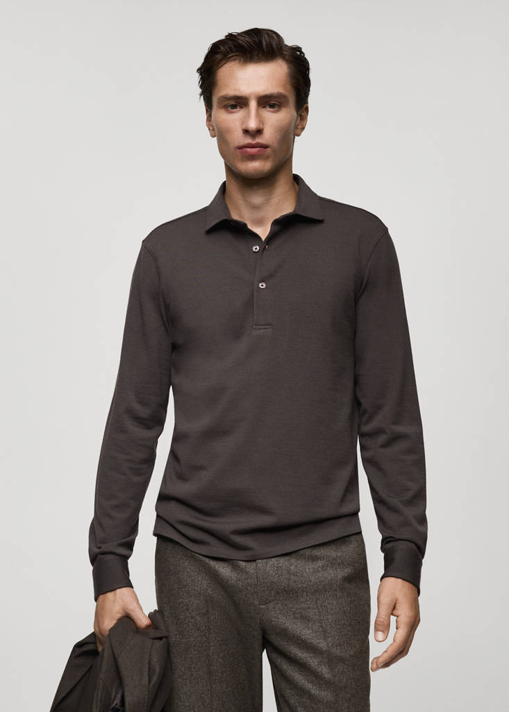 Selection Collection. Wool mix fabric. Regular fit. Polo-neck with button closure. Long sleeves with buttoned cuffs. Straight hem with side slits