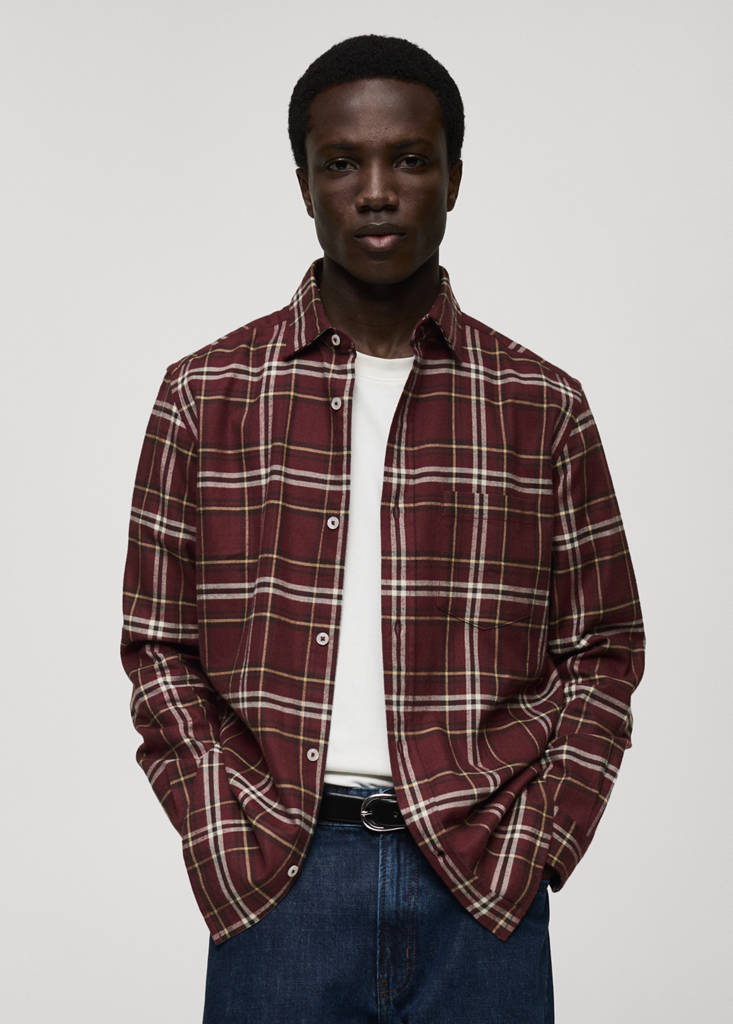 Shirt collar. Flannel fabric. Check-pattern. Button up. Patch pocket on the front. Buttoned cuffs. Classic fit