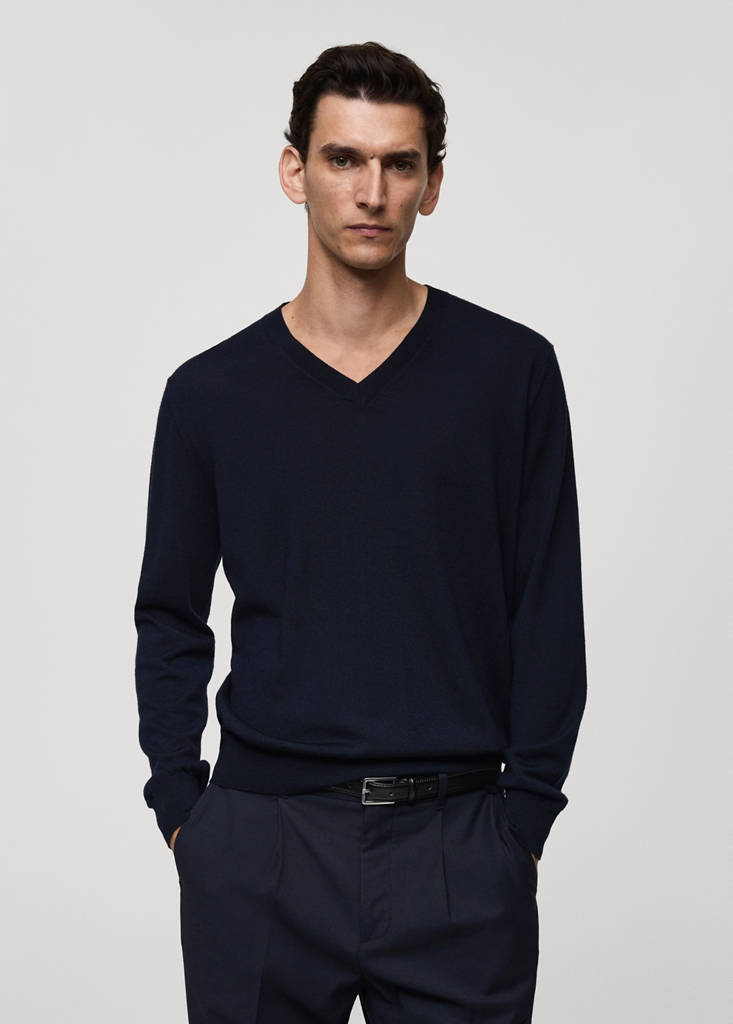 ESSENTIALS: Made to last. 100% merino wool. Long sleeves with elastic cuffs. V-neck. Straight hem. Medium knit fabric. Untrimmed hem
