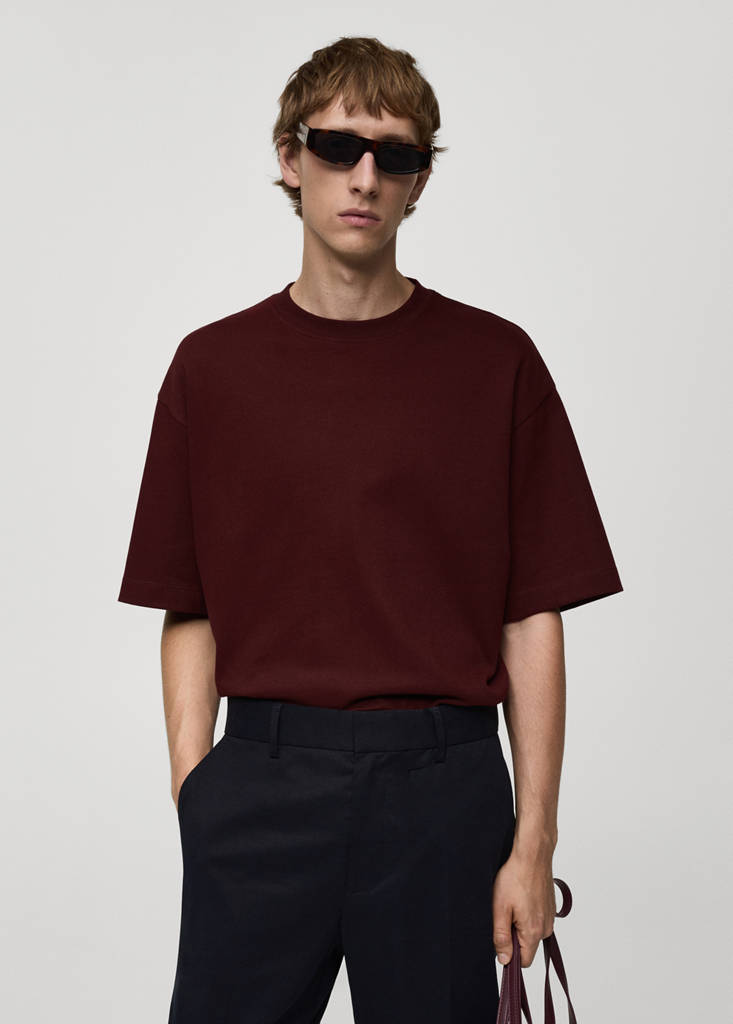 100% cotton oversized t-shirtCurrent price [đ 899,000 ]đ 899,000Select a colourBurgundySelect your sizeSMLXLDimensionsAdd to WishlistSee lookFree delivery to storeOversized design. Round neck. Short sleeves. Straight hem. 100% cotton fabricDetails, composition and careStore availability