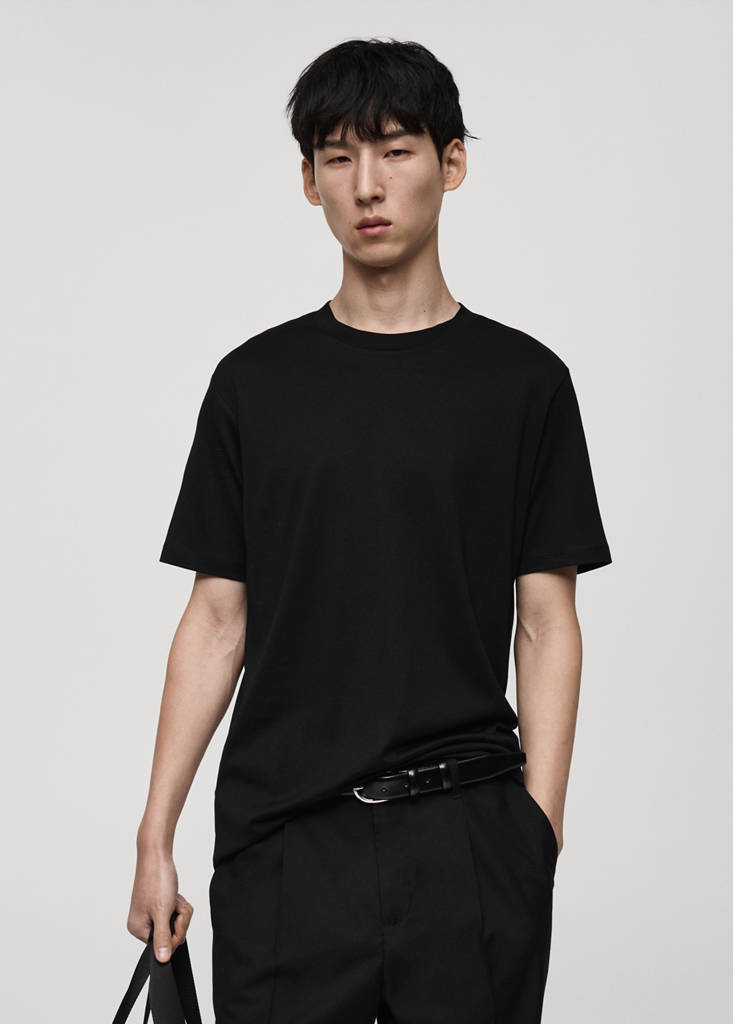Slim fit. 100% mercerised cotton. Round neck. Short sleeves. Straight hem. The ivory color is exclusive online. Sustainable cotton fabric. ESSENTIALS: Made to last. Regular fit. The chocolate brown and sand models are an online exclusive. Standard Length. Slim Silhouette. Light cotton. 100% cotton fabric. Mercerised finish. Round Lapel Collar. Short Sleeve Length. Short sleeves. The model is wearing a size M