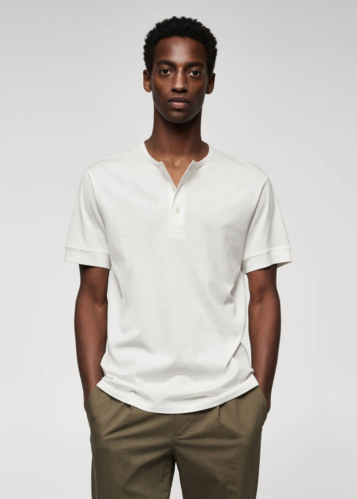 Henley cotton T-shirtCurrent price [đ 1,099,000 ]đ 1,099,000Select a colourOff WhiteSelect your sizeXSSMLXLXXLDimensionsAdd to WishlistSee lookFree delivery to storeRegular fit. Cotton fabric. Henley collar. Short sleeve. The model is 187 cm tall and is wearing a size MDetails, composition and careStore availability