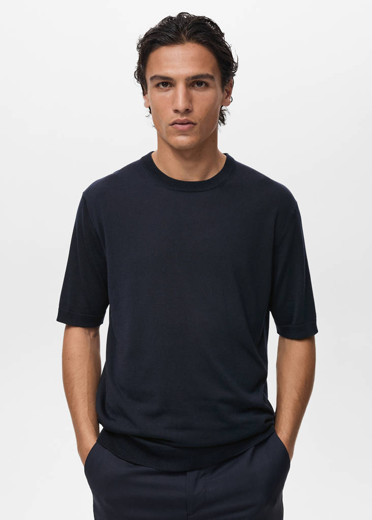 Selection Collection. Lyocell-blend fabric. Straight-fit. Fine-knit fabric with micro-structure. Round neck. Short sleeves. Ribbed collar, sleeves and hem