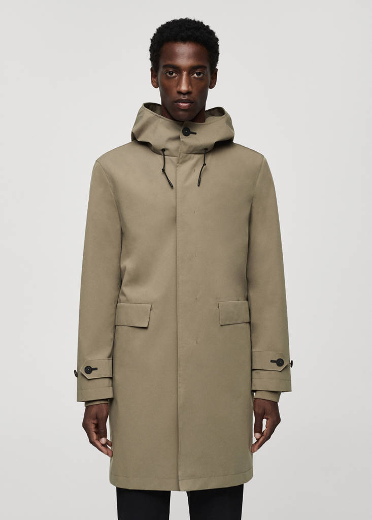Performance Collection. Front zip and snap button closure. Drawstring hood. Long sleeves. Bottom opening with button fastening. Interior pocket. Water-repellent: The durable finish of this garment protects against light rain, repelling contact with water and raindrops. Windproof: This durable material offers protection against the wind for greater comfort in outdoor lifestyle. Breathable: This fabric helps regulate body temperature by allowing moisture to escape