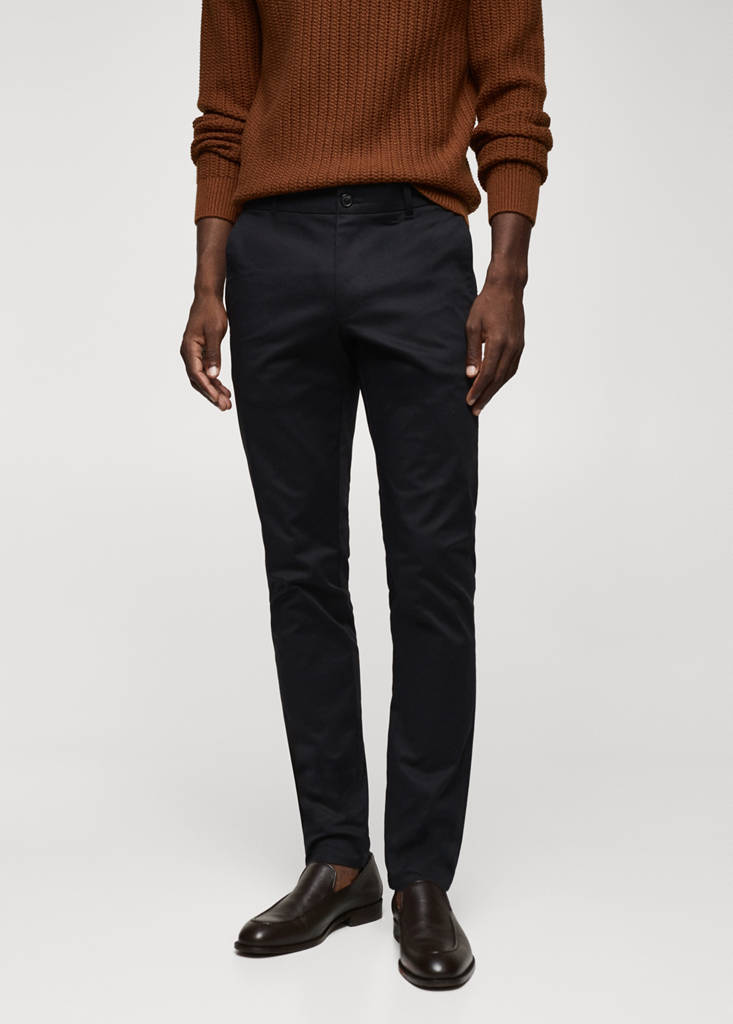 Skinny cotton chino trousersCurrent price [đ 1,699,000 ]đ 1,699,000Select a colourNight BlueThe model is wearing size 42 and is 189cm tall.Select your size3840424446DimensionsAdd to WishlistSee lookFree delivery to storeSkinny fit. Slightly elastic cotton fabric. Chinos style. Belt loops. Zip and button fastening. Two side pockets. Two welt pockets at the backDetails, composition and careStore availability
