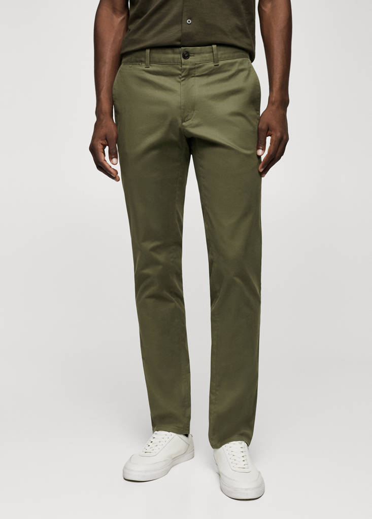 ESSENTIALS: Made to last. Slim fit. Sustainable cotton fabric. Belt loops. Zip and one button fastening. Two side pockets. Coin pocket. Two welt pockets on the back. The model is 187 cm tall and is wearing a size 42