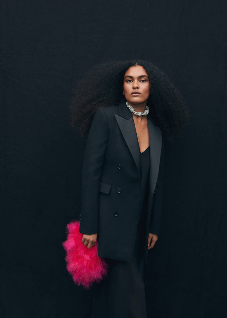 Satin. Feather detail. Medium. Clutch style. Long strap. Press stud fastening. Inner lining. Party and events collection