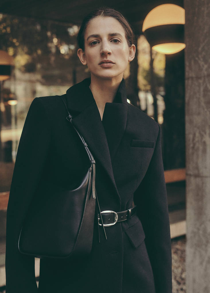 Large. Faux leather. Shoulder strap. Adjustable strap. Inner zipped pocket. Zip fastening. Decorative buckle. Inner lining. Office looks