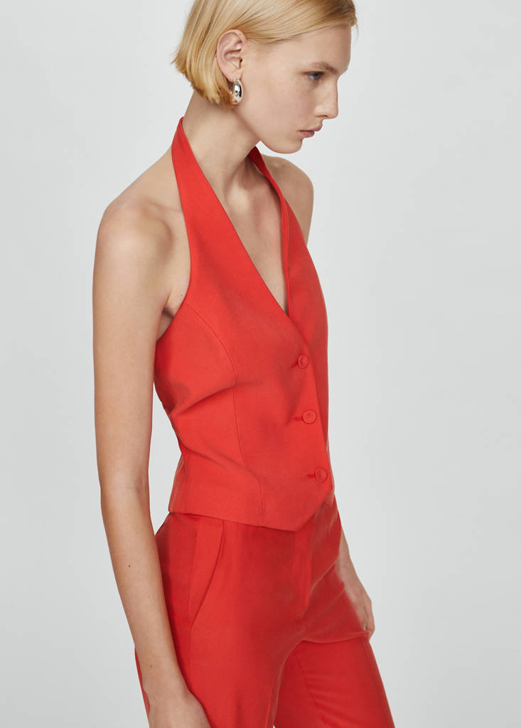Suit waistcoat with buttonsCurrent price [đ 1,499,000 ]đ 1,499,000Select a colourCoral RedThe model is wearing size S and is 179cm tall.Select your sizeXXSXSSMLXLXXLAdd to WishlistSee lookFree delivery to storeSuit style. Straight design. V-neck. Open back. Sleeveless. Wide straps. Inner lining. Office looks. Front closure with buttonsDetails, composition and careStore availability
