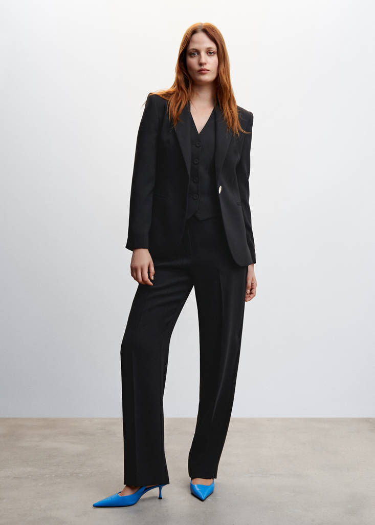 Flowy fabric. Suit style. Fitted design. Button fastening on the front section. Sleeveless. Co-ord