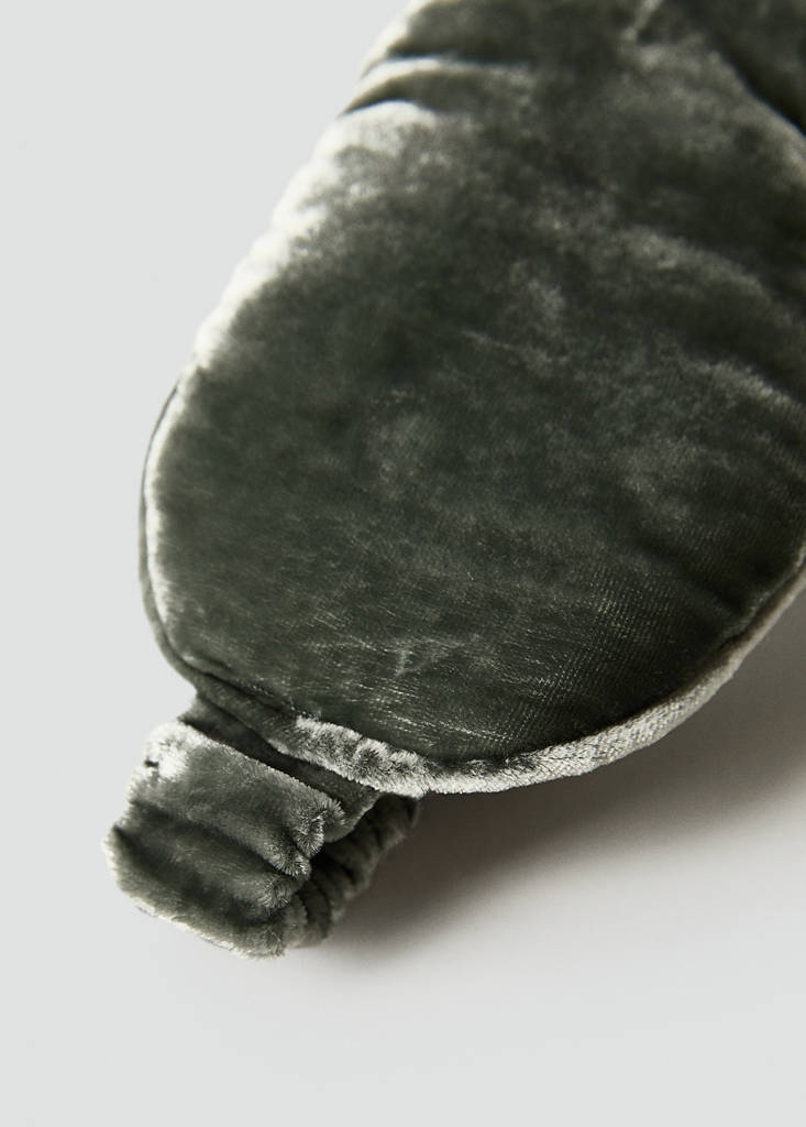 Velvet fabric. This sleep mask offers a soft and comfortable feel, adapting perfectly to the face for irritation-free sleep. The elasticated cord is designed to fit snugly without constricting, ensuring the mask stays in place all night long. Available in various sizes. Coordinates with more products from the collection.