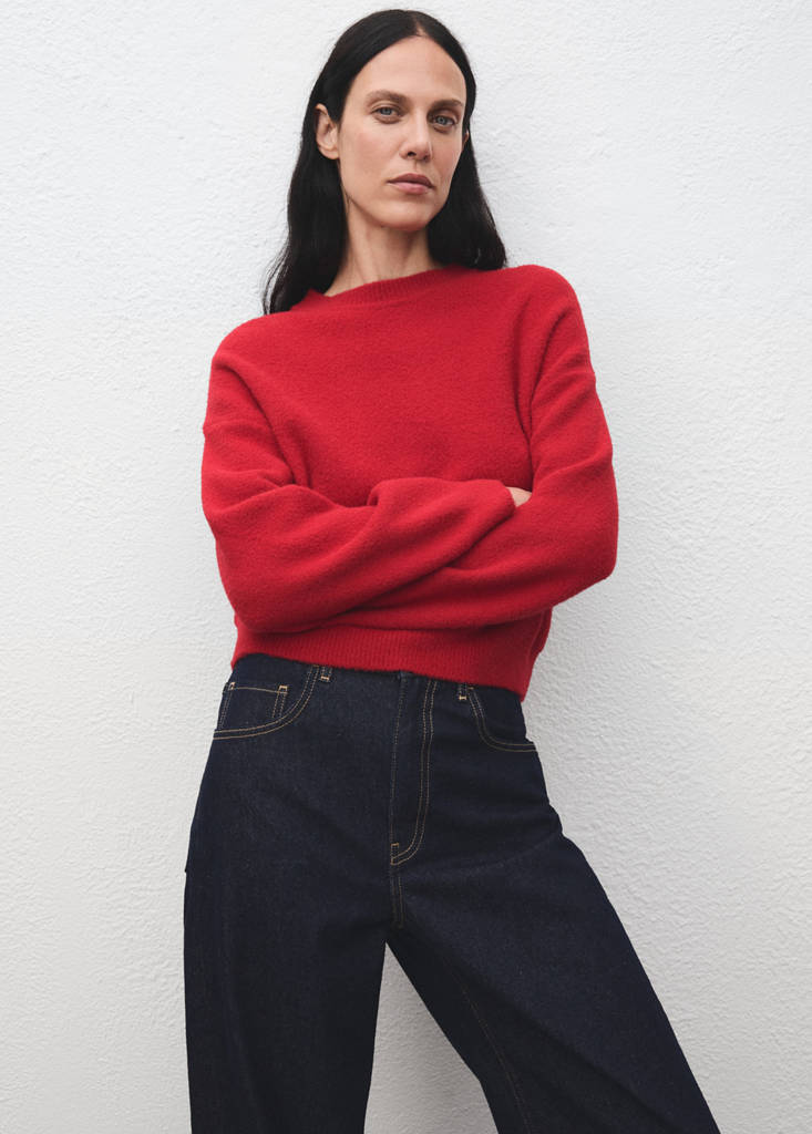 Medium knit fabric. Soft fabric. Straight design. Round neck. Long sleeves