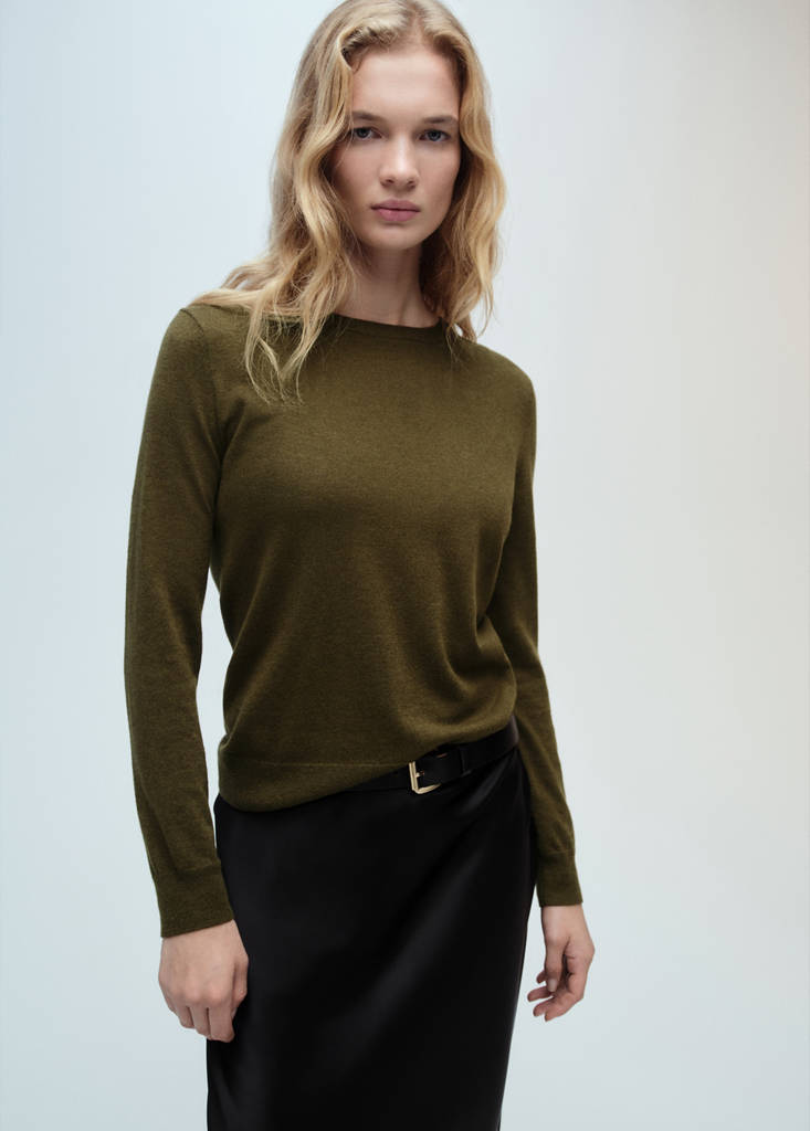 Wool-blend round-neck sweaterCurrent price [đ 899,000 ]đ 899,000Select a colourKhakiThe model is wearing size S and is 178cm tall.Select your sizeXXSXSSMLXLXXLDimensionsAdd to WishlistSee lookFree delivery to storeWool mix fabric. Straight design. Round neck. Standard design. Long sleeves. No FasteningDetails, composition and careStore availabilityItem qualitiesWoolAt least 20%A natural fibre that creates durable garments and stands out for its capacity to regulate the body temperature.