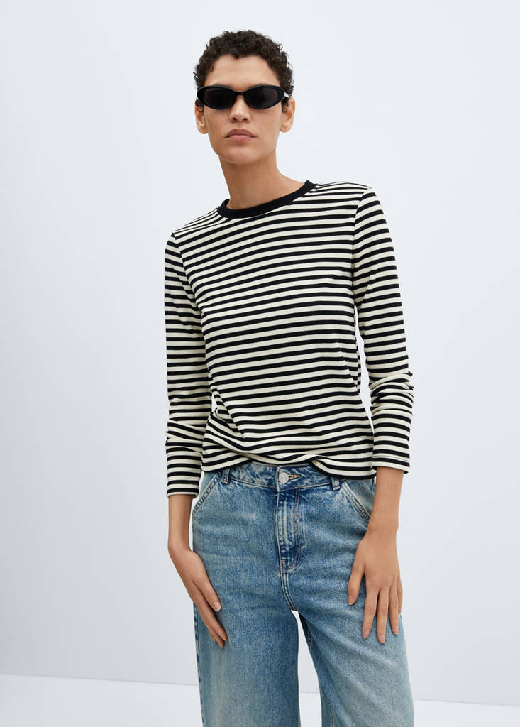 Striped long sleeves t-shirtCurrent price [đ 899,000 ]đ 899,000Select a colourBlackThe model is wearing size S and is 176cm tall.Select your sizeXXSXSSMLXLXXLDimensionsAdd to WishlistSee lookFree delivery to storeKnit fabric. Straight design. Striped print. Round neck. Long sleeves. No FasteningDetails, composition and careStore availability
