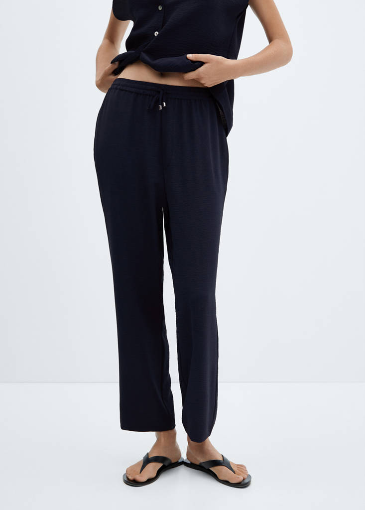 Flowy jogger trousersCurrent price [đ 1,299,000 ]đ 1,299,000Select a colourDark NavyThe model is wearing size S and is 177cm tall.Select your sizeXSSMLXLDimensionsAdd to WishlistSee lookFree delivery to storeFluid fabric. Jogger Style. Two side pockets. No Fastening. Elastic waist with tie closure. Total lookDetails, composition and careStore availability