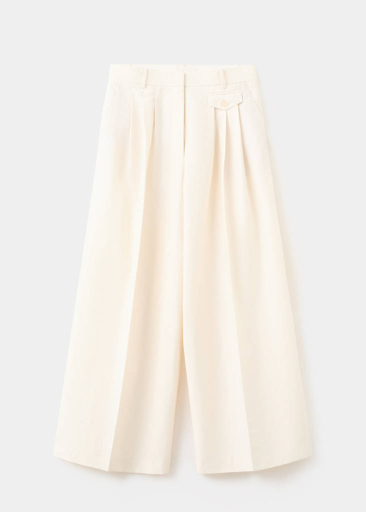 Straight cotton trousers with pleats