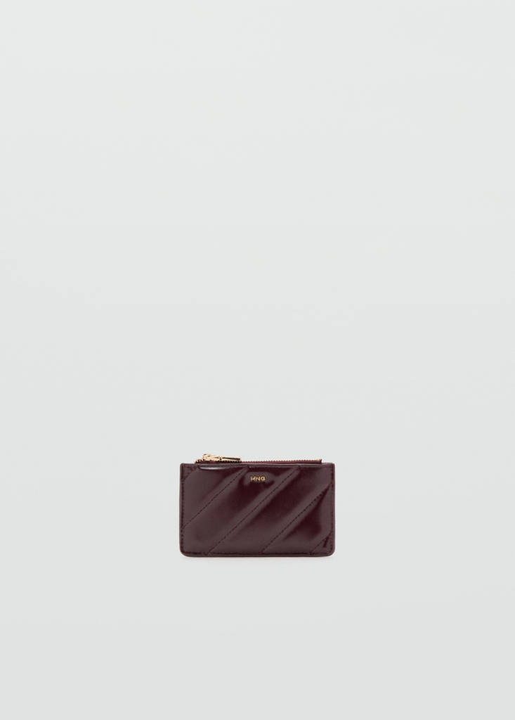 Quilted design. Patent leather effect. Five card slots. Zip closure. Small size