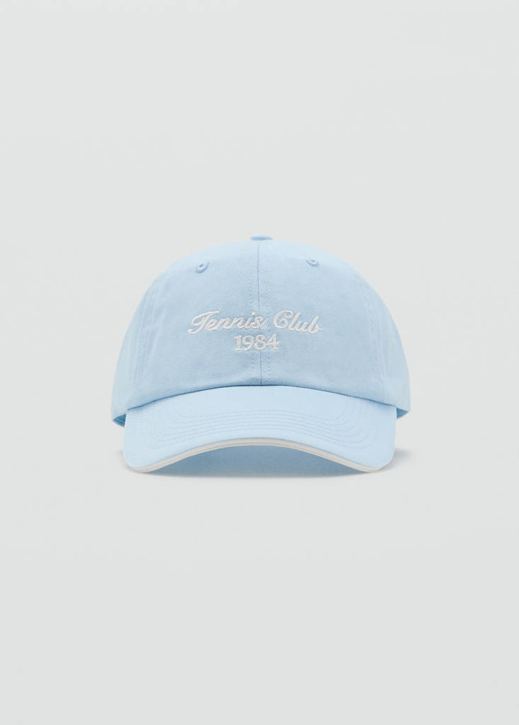 Cotton fabric. With a visor. Contrasting panel. Embroidered message. Adjustable closure. Godo Collection