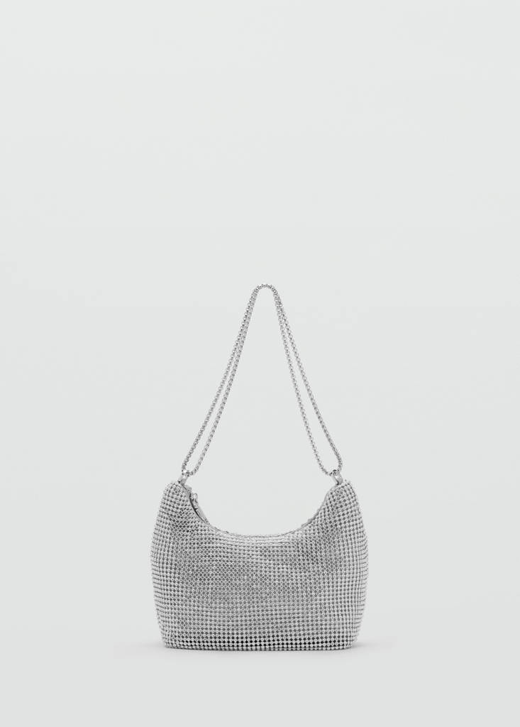 Small size. Medium. Double handle. Shoulder strap. Interior pocket. Zip closure. Crystals appliqué. Inner lining. Faceted crystals. Chain strap. Party, ceremony and communion collection