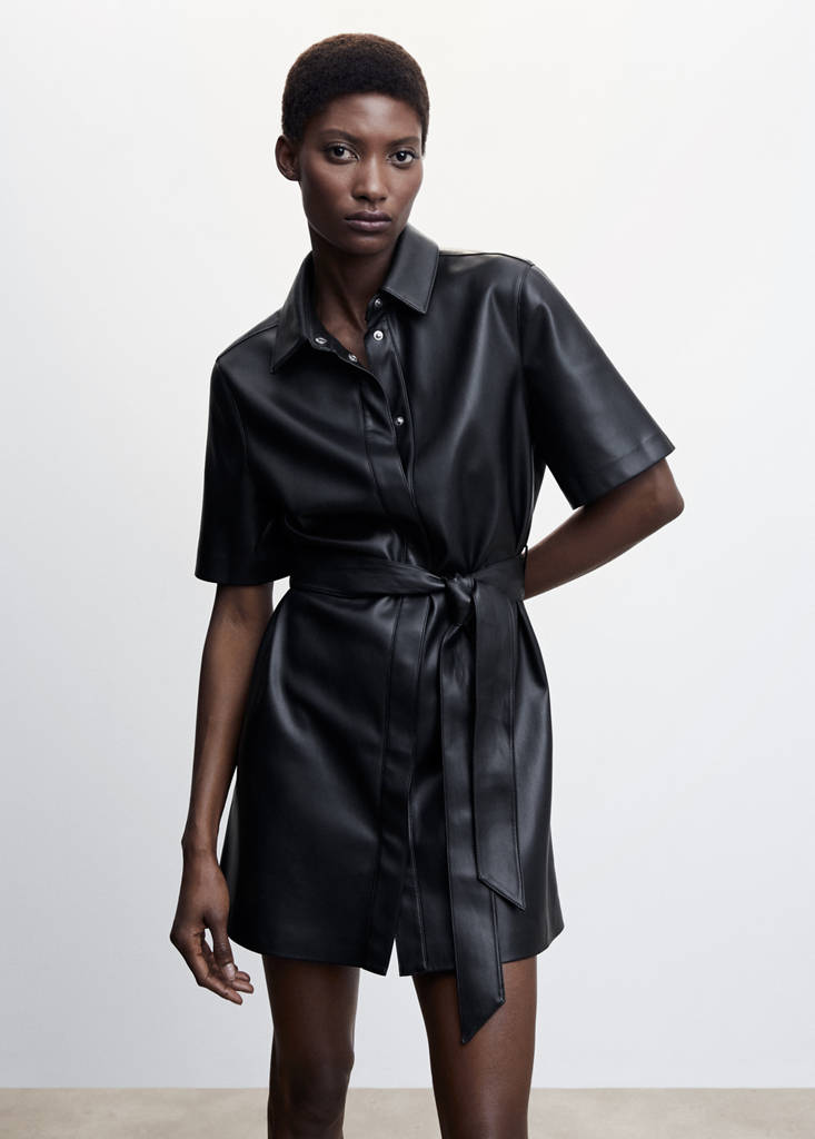 Leather-effect shirt dress