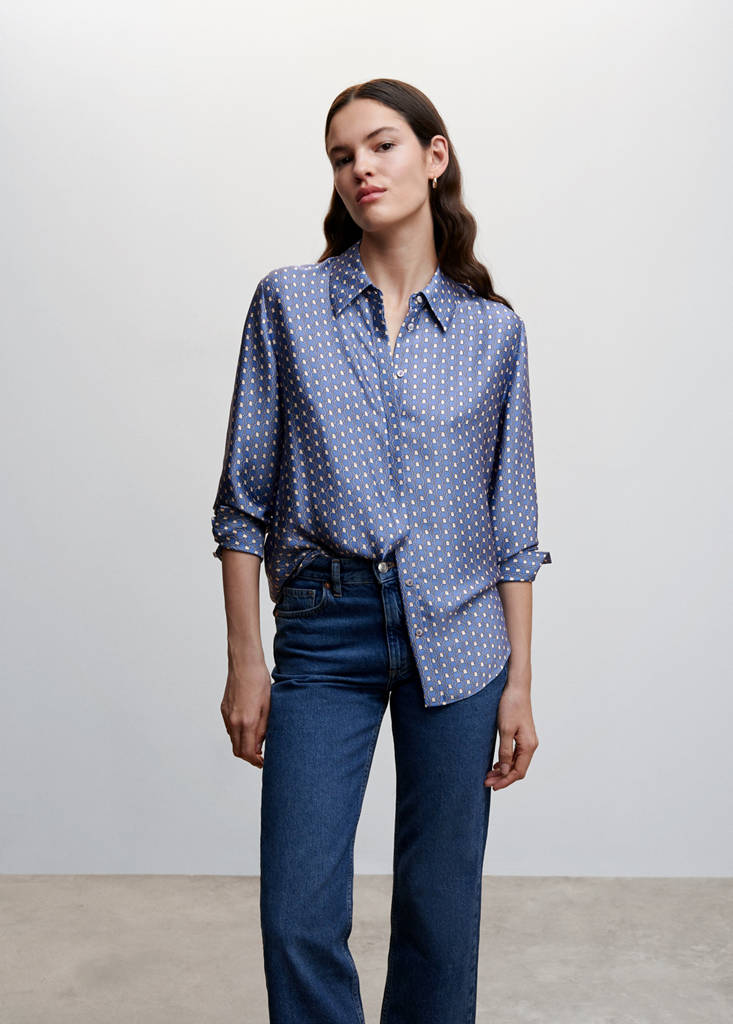 Fluid fabric. Textured fabric. Satin finish. Straight design. Shirt collar. Long sleeves with buttoned cuffs. Button fastening at the front. Available Plus. This garment belongs to our Gift Guide. Front closure. Satin fabric. Standard design. Long sleeves. Lightweight fabric. Standard Length. Long Sleeve Length. Straight Silhouette. Flat structure Lightweight. Front Closure Location. Shirt collar with lapel. Striped print. Satin Material. Print Chains. Print Polka Dots. Office looks. No Print. No Fantasy. Classic collar. Regular fit. Party, ceremony and communion collection