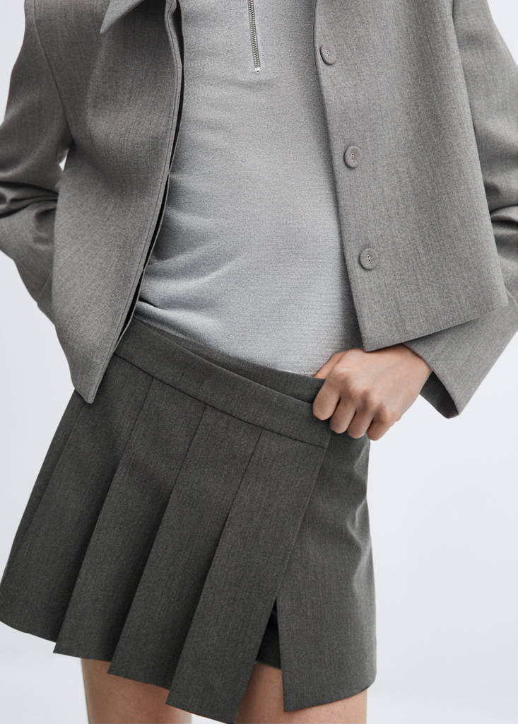 Skort design. Patterned design. Two welt pockets at the back. Button closure. Inner lining