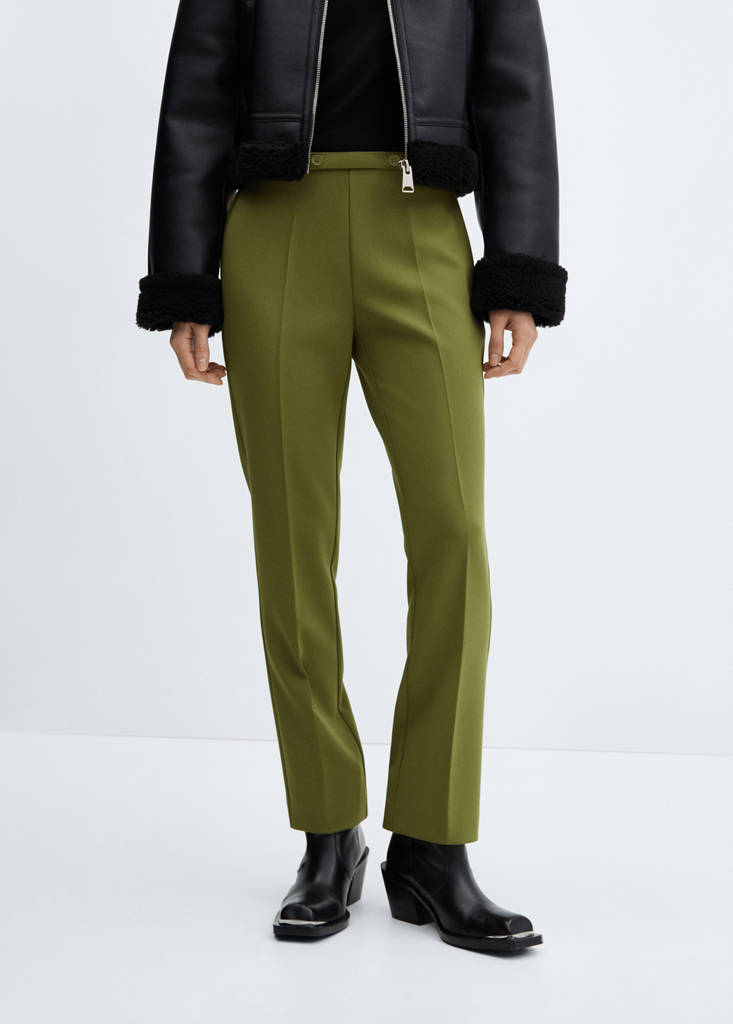 Belt straight-fit trousersCurrent price [€ 35.99 ]€ 35.99Select a colourGreenThe model is wearing size 36 and is 176cm tall.Select your size32343638404244DimensionsAdd to WishlistSee lookFree delivery to storeStraight design. Mid-rise. Belt loops. Elasticated waistband. Invisible lateral zip fastening. Removable belt. Adjustable belt. Office looksDetails, composition and careStore availability