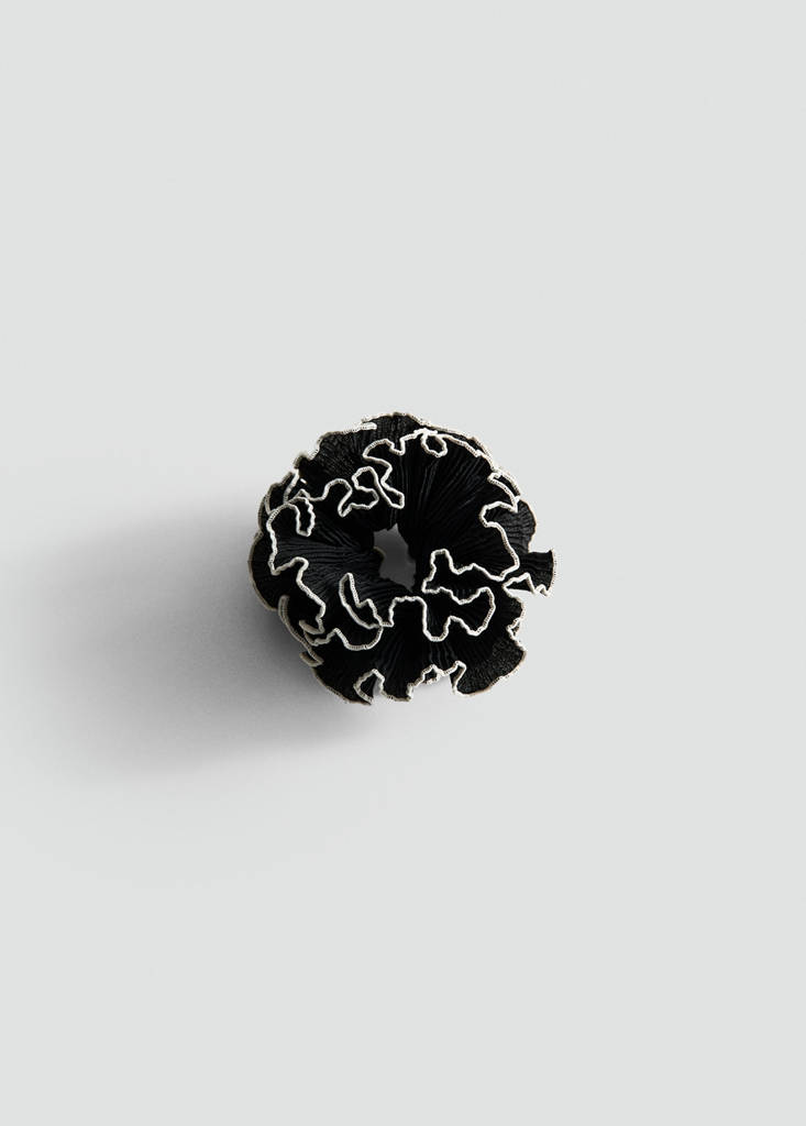 Flower scrunchie with contrasting trimCurrent price [R 319,00 ]R 319,00Select a colourBlackSelect your sizeOne sizeAddAdd to your wishlistSee lookFree delivery to storeFloral design. Textured. Contrast trimDetails, composition and careStore availability